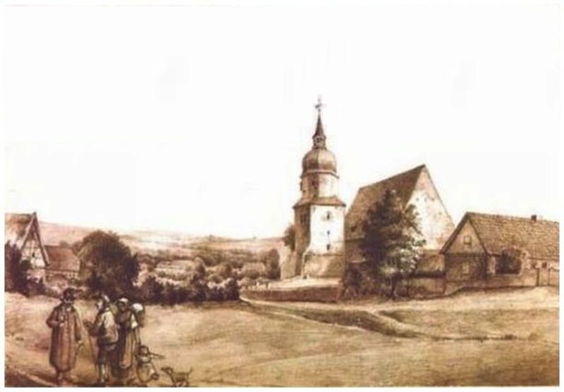 2) Blick auf die Dorfkirche Sankt Georg, Zeichnung um etwa 1850