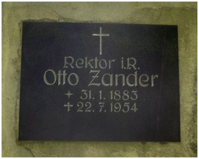 3) Die Grabwandplatte über der Grabanlage des in Helfta damals hoch geschätzten Volksschullehrers und Heimatforschers Otto Zander (*31.01.1883 +22.07.1954) im Jahr 2005. Seine Ruhestätte ist inzwischen überwachsen und wird nicht mehr gepflegt.