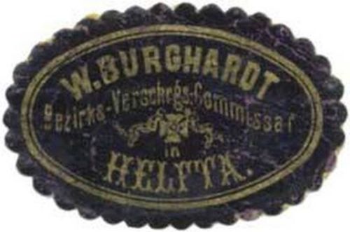 4) Siegelmarke des Helftaer Bezirks-Versicherungskommissars W. Burghardt, um 1925