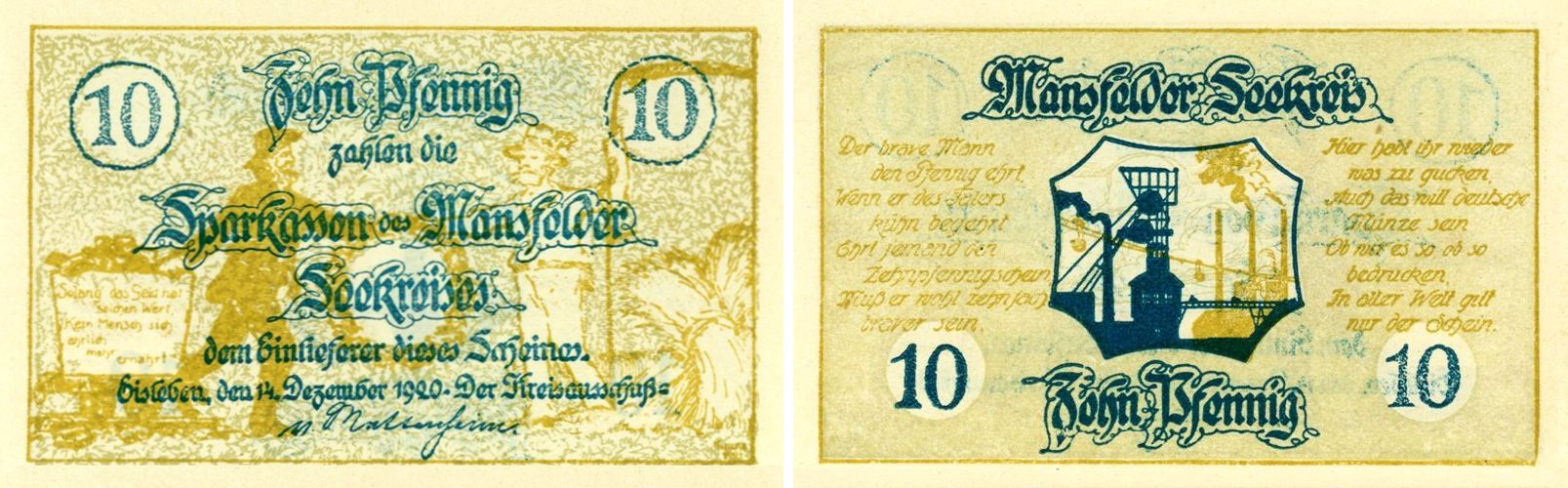 13) 10 Pfennig Nortgeldschein der Sparkassen des Mansfelder Seekreises Eisleben, 1920